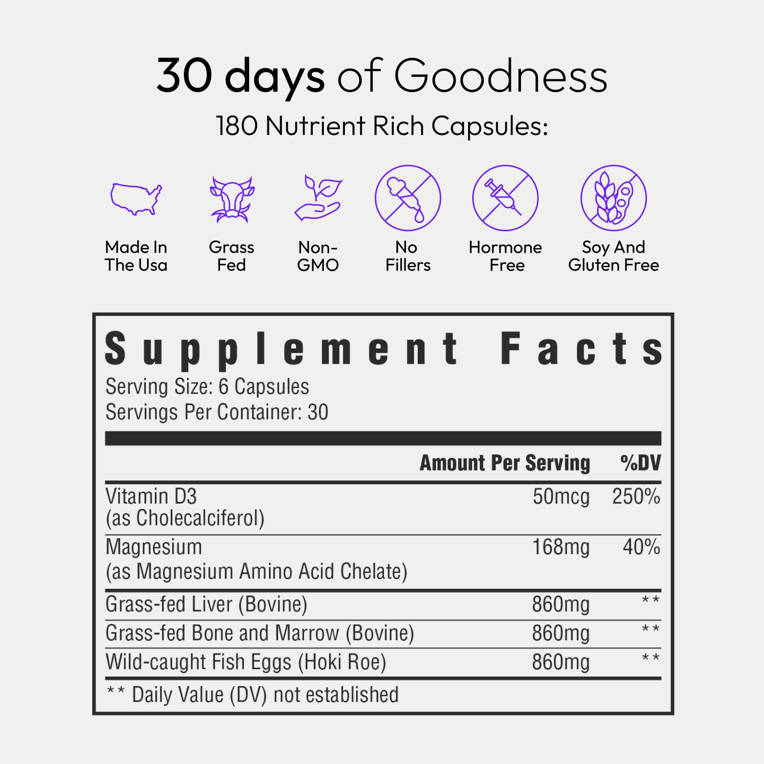 Ingredients: Fish Eggs, Liver, Bone and Marrow, Magnesium, Vitamin D3