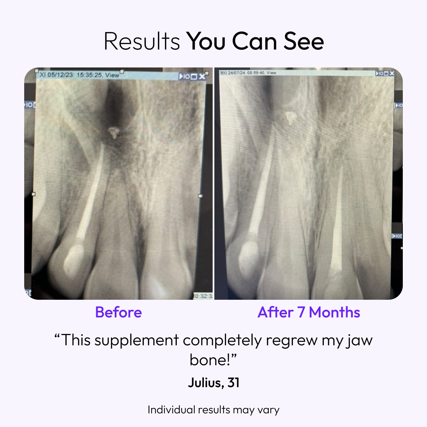 Most users see results in 3 weeks, but individual experiences may vary. For best results, take Tooth Restore consistently each day, gradually increasing your dosage as your body adjusts. Starting with one capsule and building up allows your system to adapt and maximizes the benefits. Regular use of Tooth Restore, combined with a diet low in processed foods and good oral hygiene, enhances overall effectiveness.